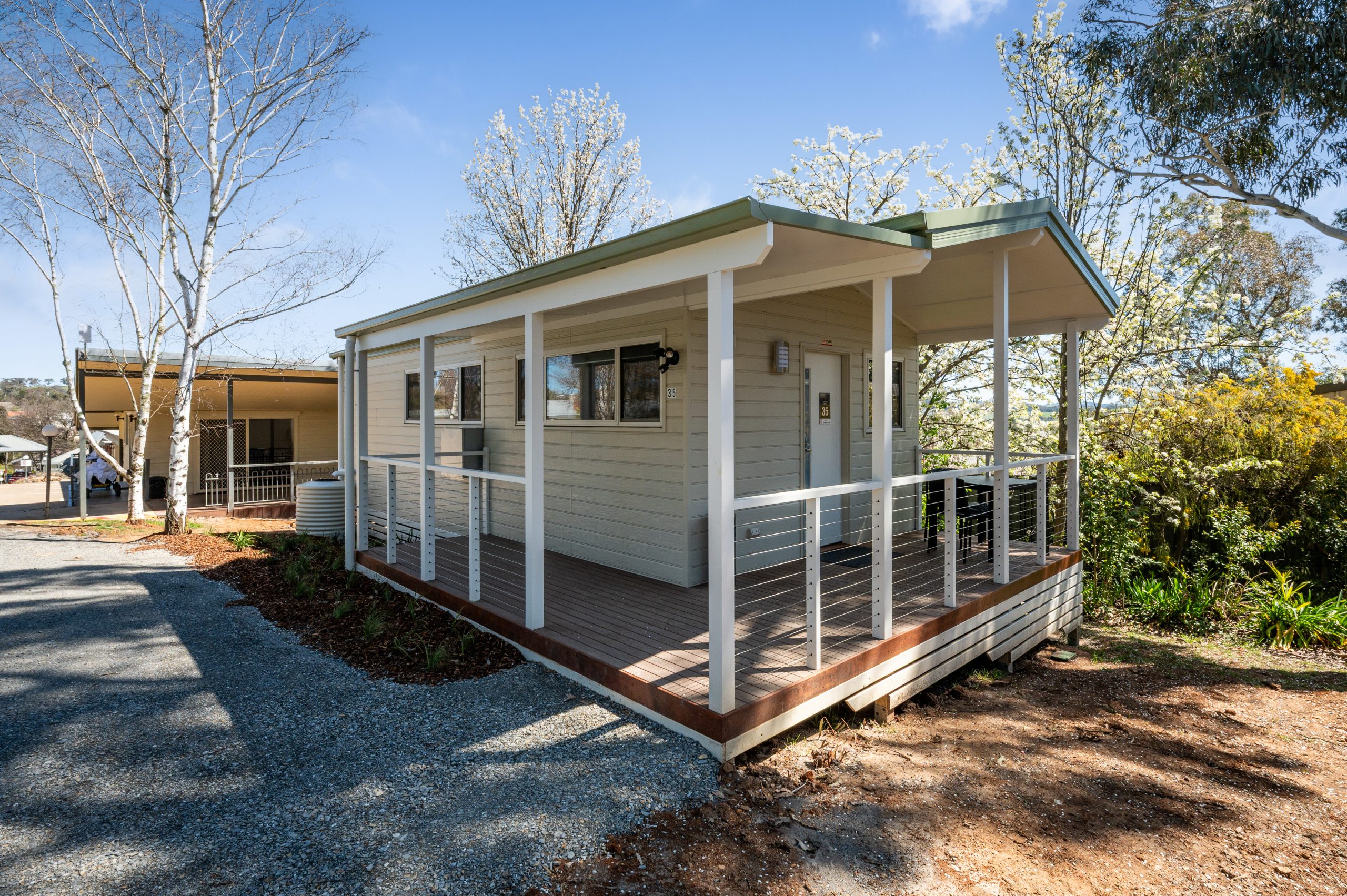 Our One-Bedroom Cabin offers a comfortable and practical stay, featuring a private bedroom with a queen bed, a bathroom with a bath and separate shower, and a convenient kitchenette equipped with a microwave, toaster, kettle, and bar fridge. Enjoy the added bonus of a deck with an outdoor setting, perfect for relaxing.