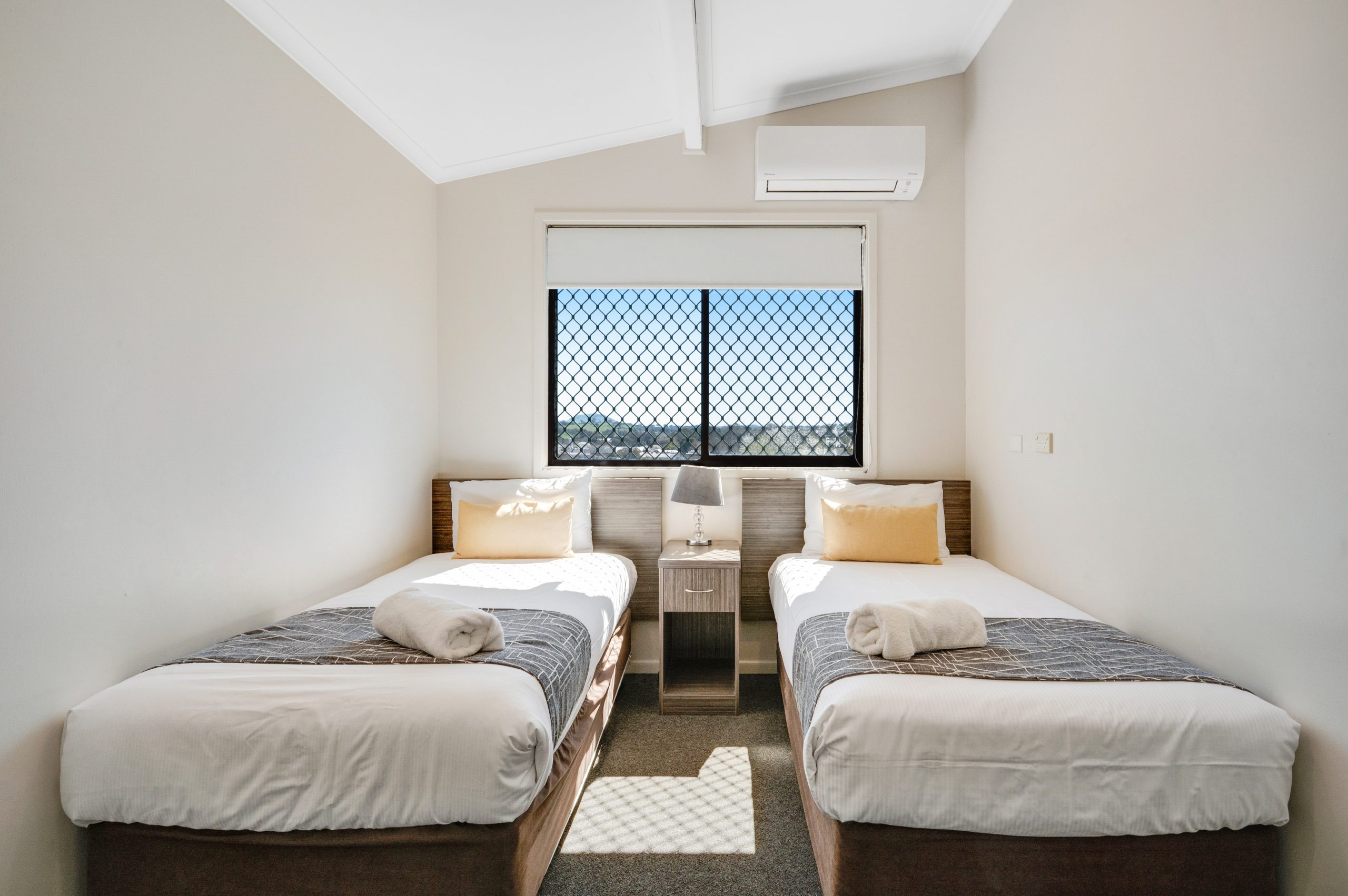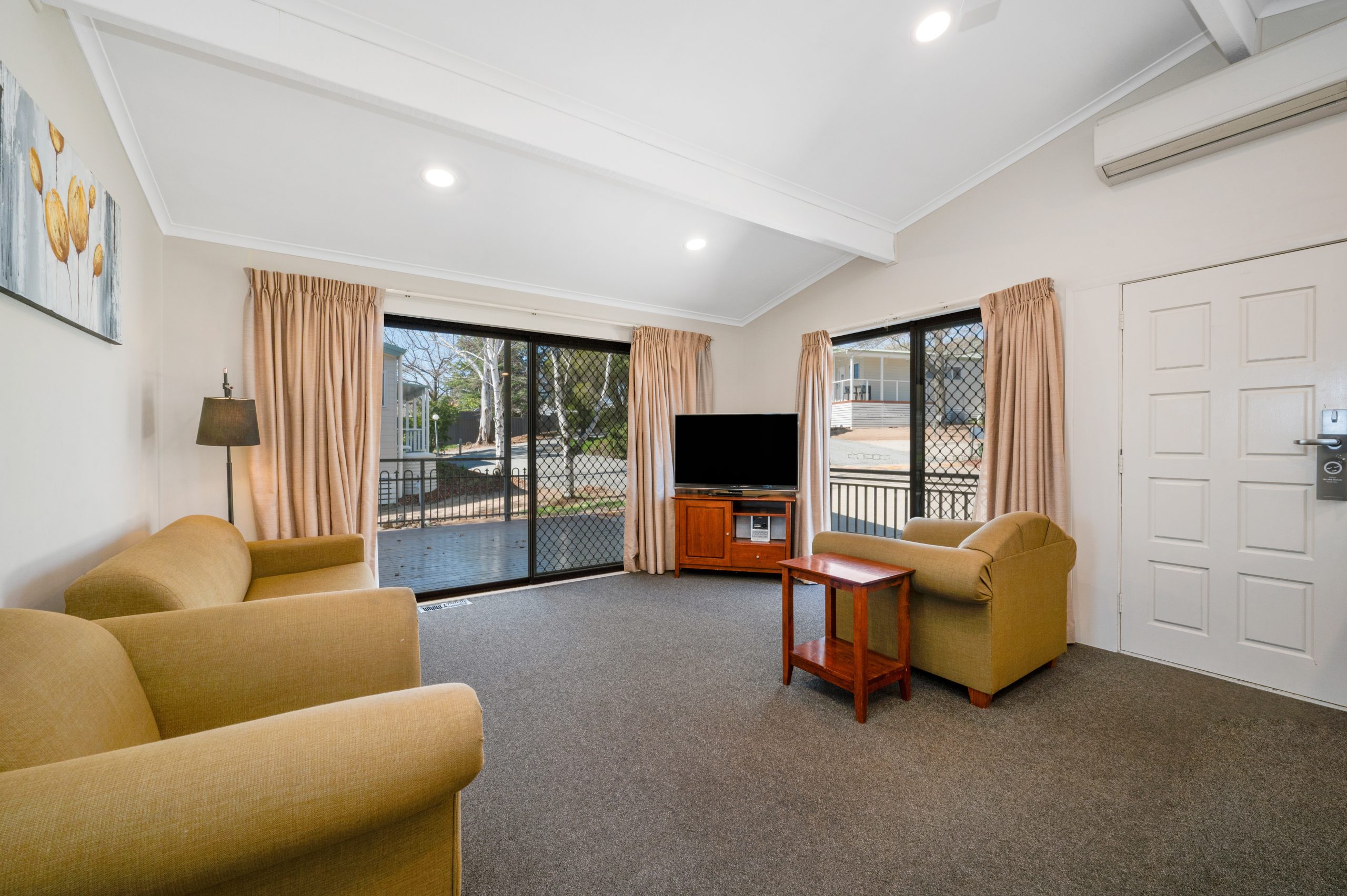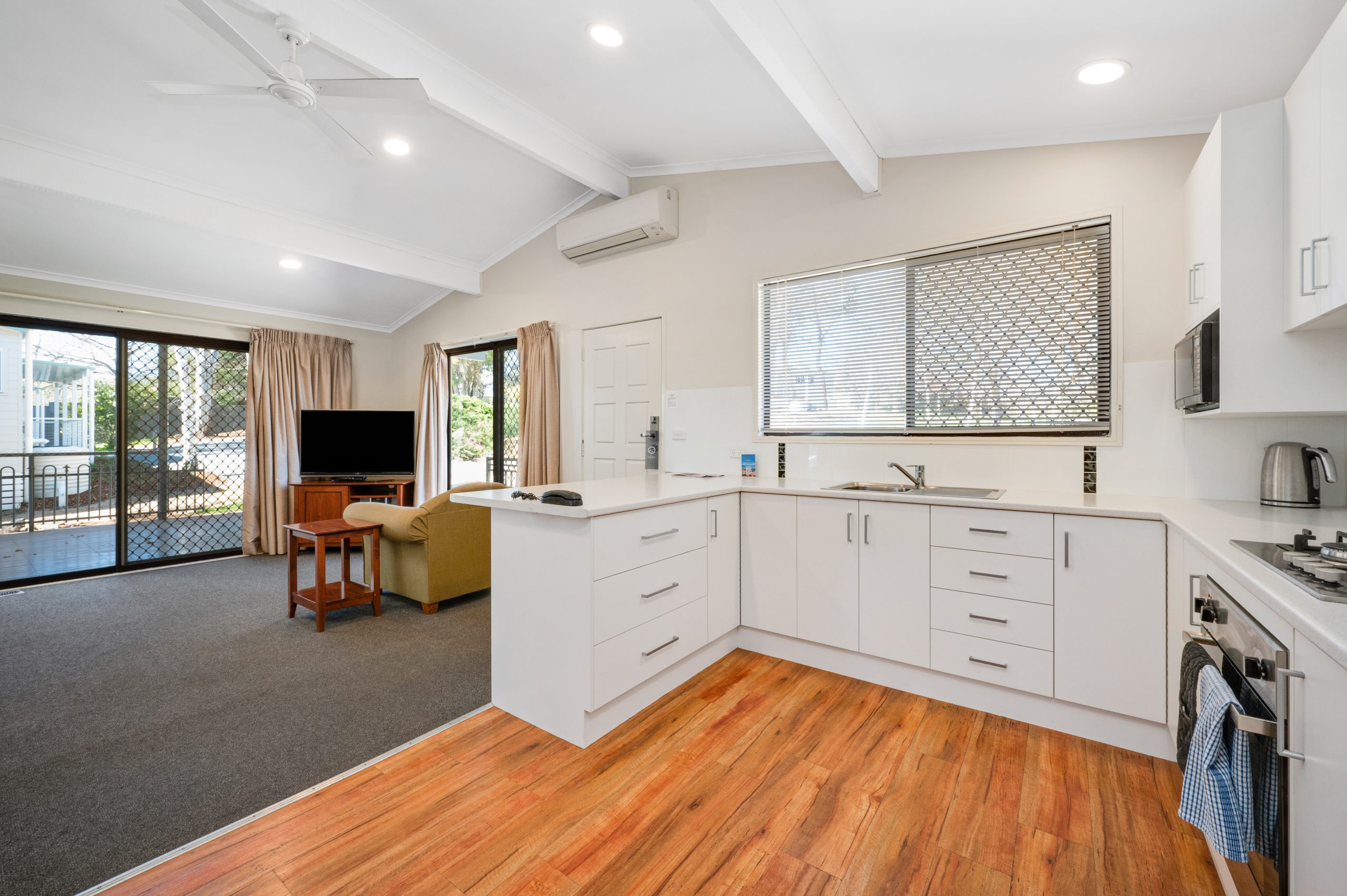 The air-conditioned cottage features a living area with fold-out double sofa bed, flatscreen TV and private en-suite bathroom. The master bedroom includes a Queen Bed, while the second bedroom has two Single Beds.